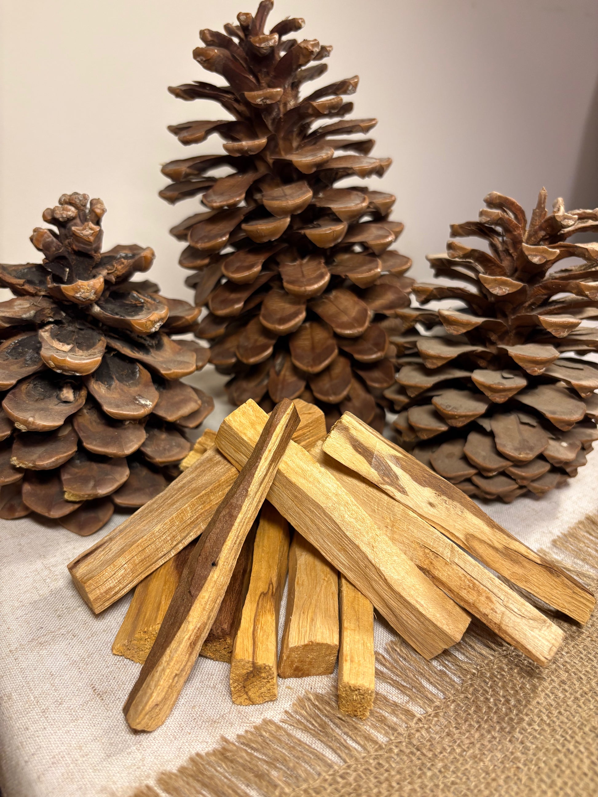 Cada trozo de Palo Santo que ofrecemos ha sido recolectado de manera responsable a partir de ramas caídas de forma natural, respetando el ciclo del árbol y su entorno. Basta con encender un extremo, dejar que prenda unos segundos y luego soplar suavemente para dejar que el humo llene el espacio con su energía reconfortante.