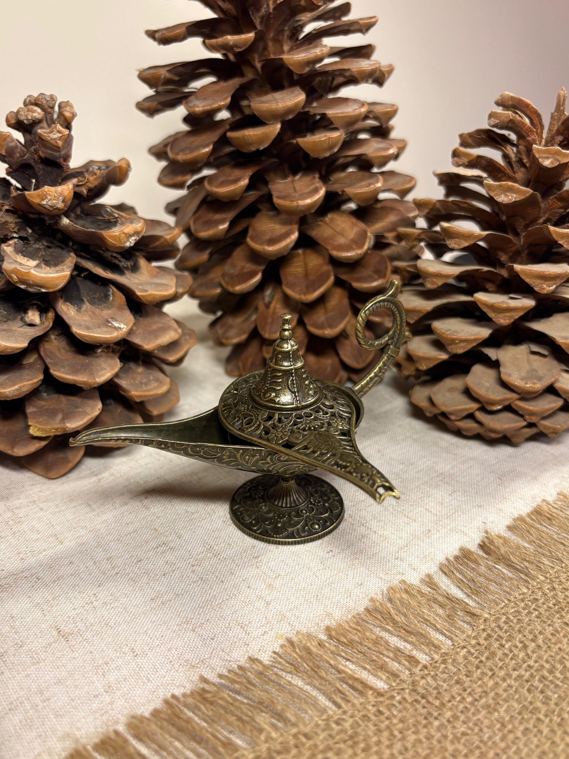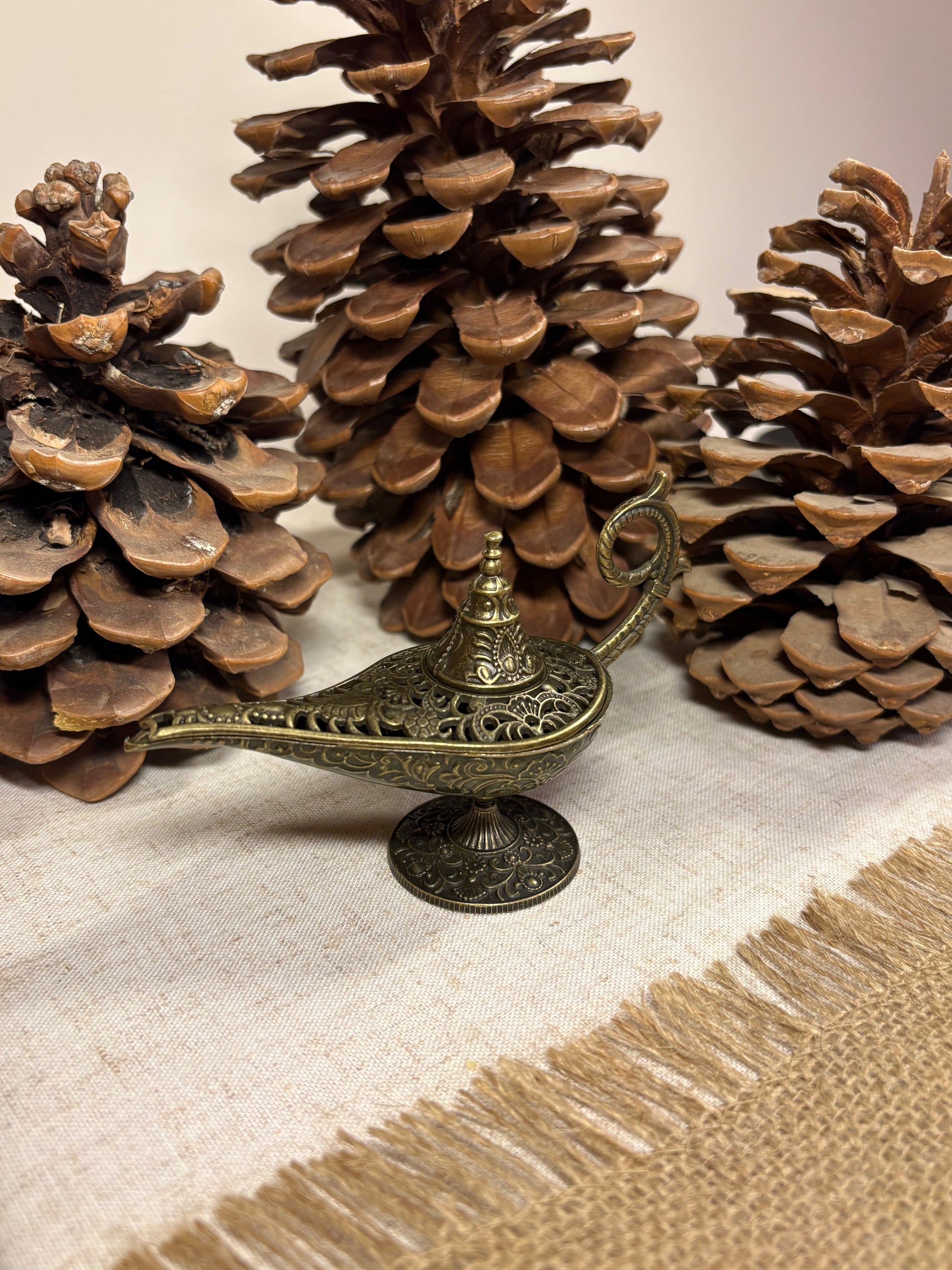 Un accesorio místico y elegante que evoca la magia. Con su diseño inspirado en la lámpara de Aladino, este quemador de incienso es perfecto para llenar cualquier espacio de calma, fragancia y un toque único.
